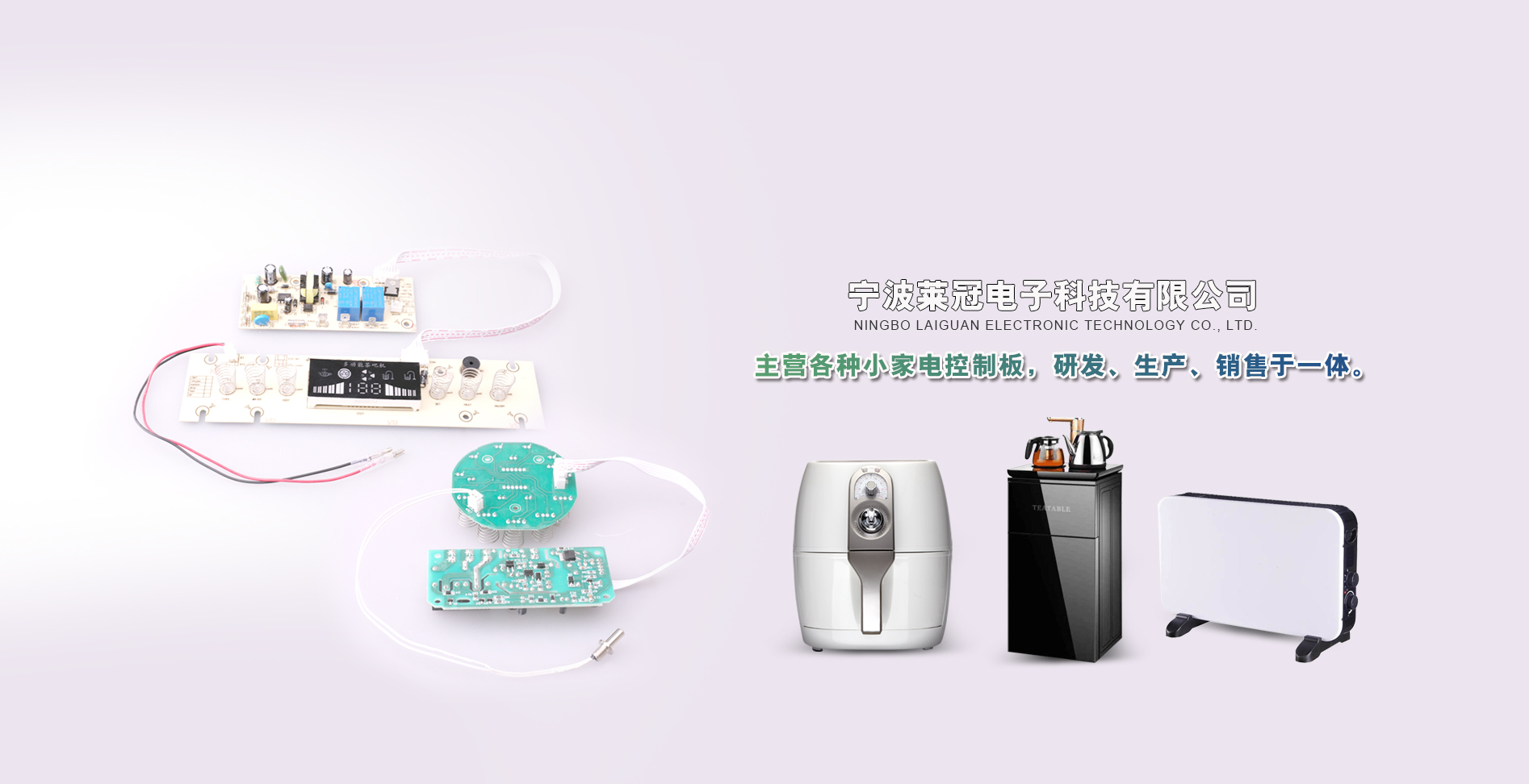 寧波萊冠電子科技是一家專業(yè)設(shè)計(jì)、生產(chǎn)、銷售為一體的各種小家電控制板,主要經(jīng)營(yíng)產(chǎn)品:空氣炸鍋、茶吧機(jī)、凈水器、電風(fēng)扇、取暖器、果汁機(jī)、碎冰機(jī)、料理機(jī)、加濕器等等。